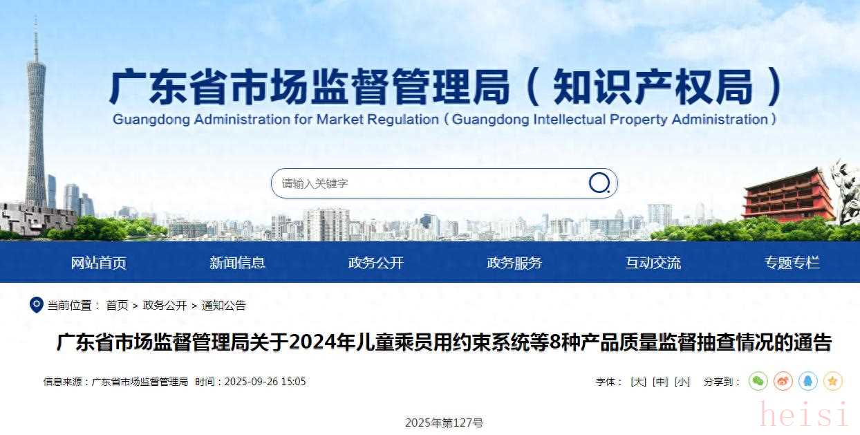 根据您提供的信息,广东省市场监督管理局发布了关于2024年儿童乘员用约束系统等8种产品质量的监督抽查情况。