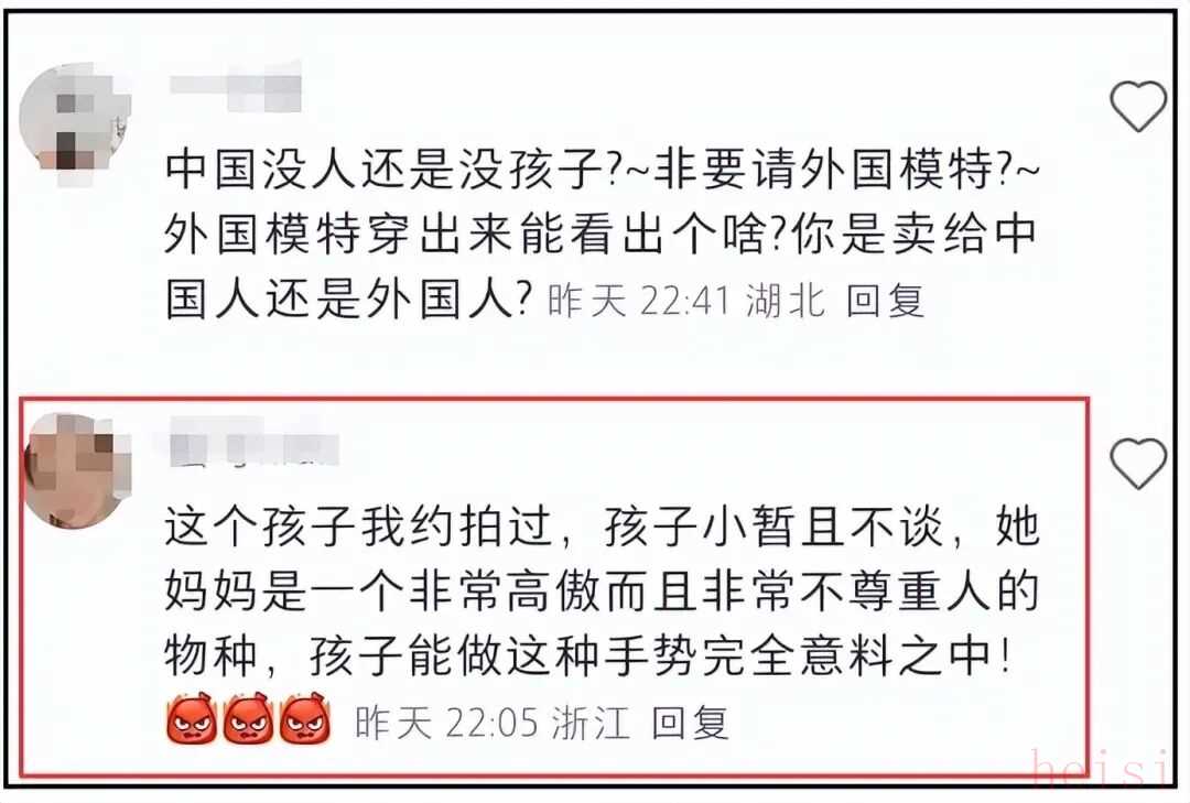 但这事儿背后的问题,可没那么简单。为什么这些外籍模特在中国市场总能“横着走”?为什么一些品牌总觉得用外国脸就是“高级”,甚至对他们的不当行为睁一只眼闭一只眼?有网友爆料,这个荷兰童模的妈妈在合作时就特别傲慢,对工作人员爱答不理,完全没把中国市场放在眼里。可即便如此,还是有不少品牌抢着用她,就因为觉得“洋面孔”更能吸引眼球。这种心态,说白了就是一种文化不自信。总觉得外来的和尚好念经,哪怕这个和尚根本看不起你。