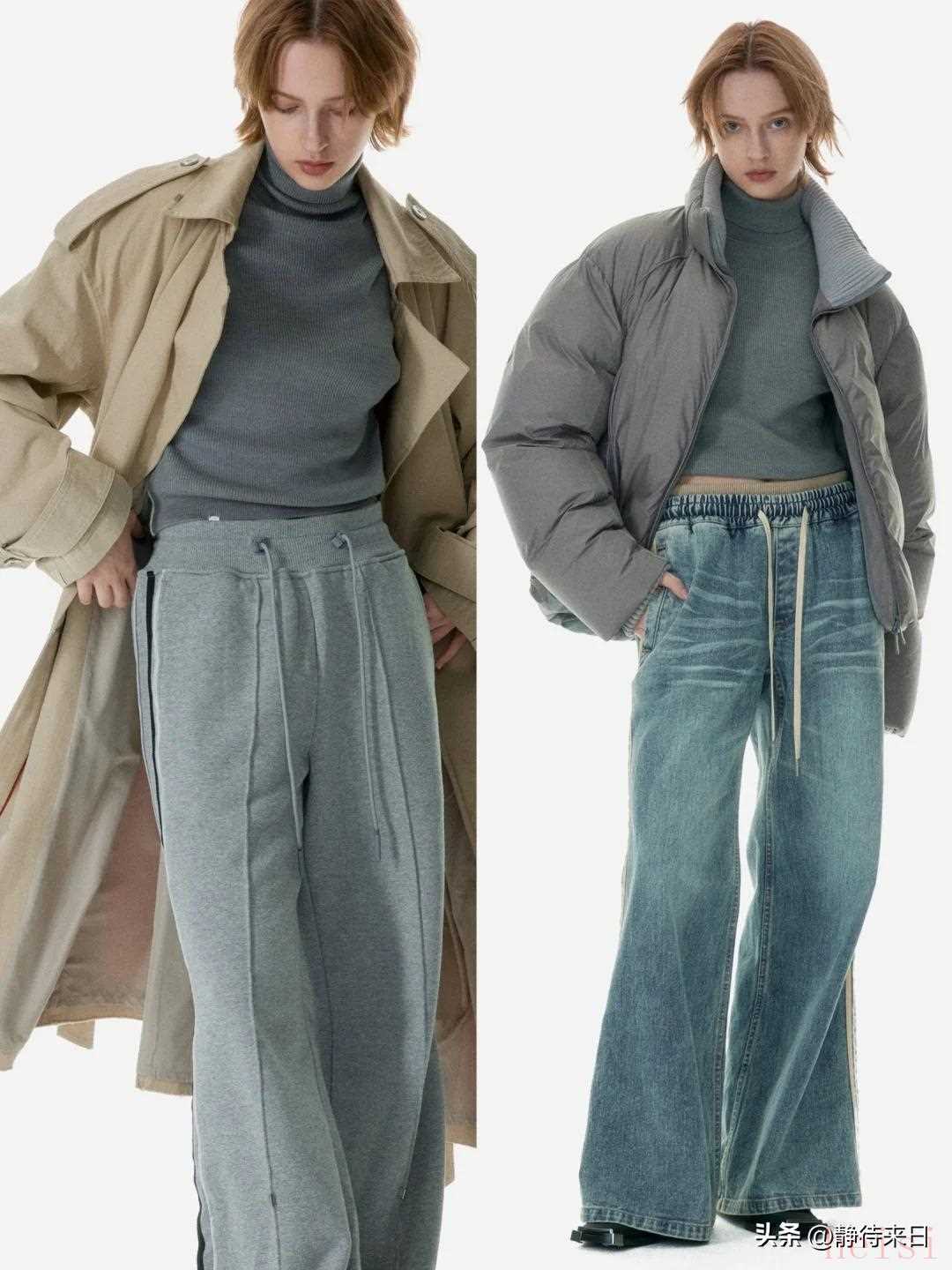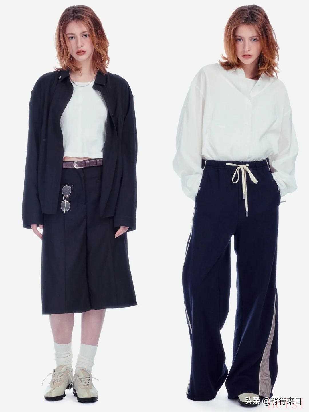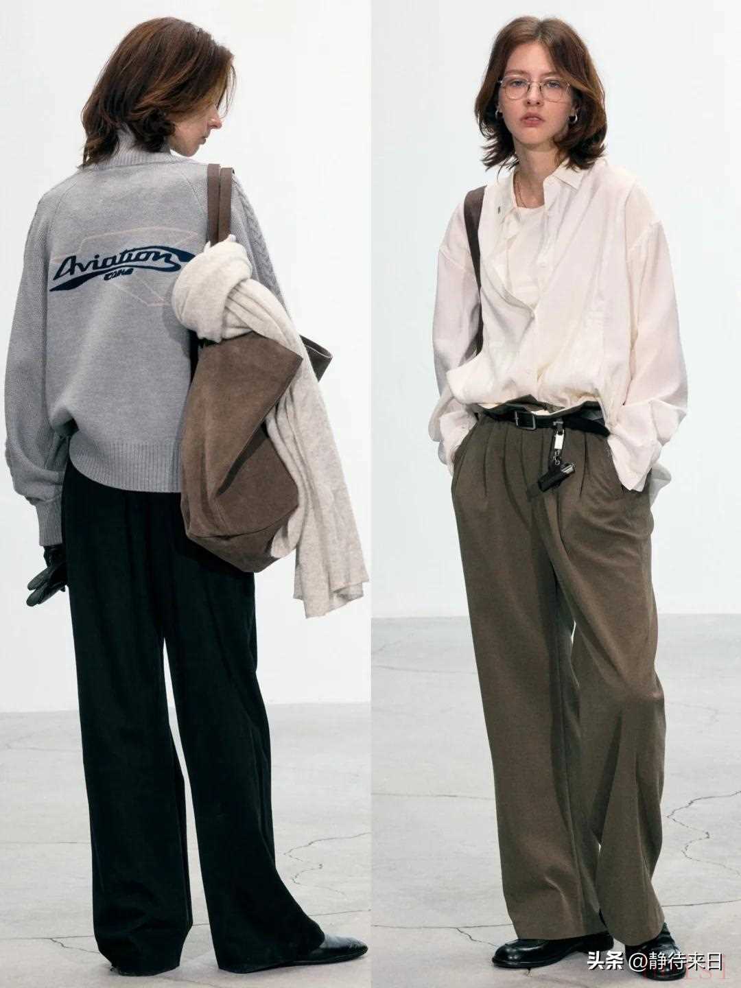 "中性单品:" 如宽松的 T 恤、卫衣、衬衫、长裤、针织衫、连衣裙(但廓形通常偏直或A字,而非紧身或裙撑款)。