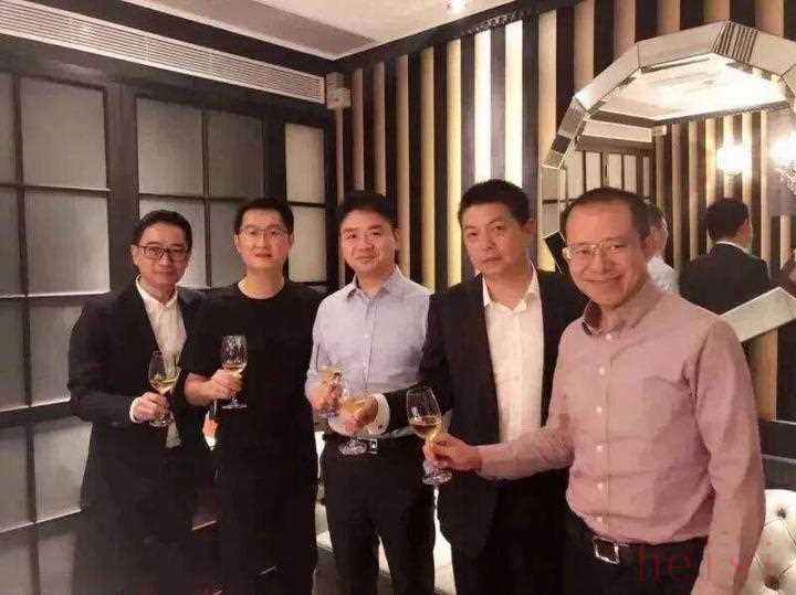 从左到右:唯品会联合创始人洪晓波,腾讯马化腾,京东刘强东,唯品会董事长沈亚,腾讯总裁刘炽平