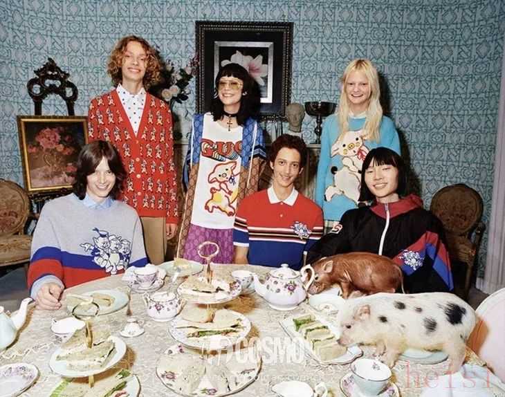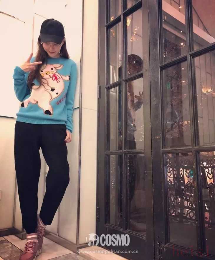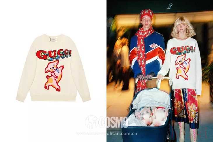 Gucci的猪年系列简直深得COCO心,衣服别上粉色珍珠母贝“飞天小猪”胸针,还怕不是春节最靓的崽?