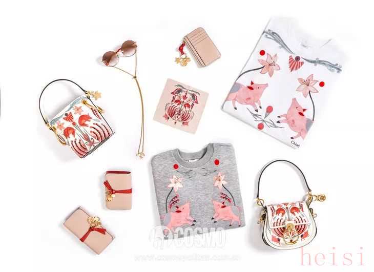 Chloé 2019中国新年特别系列有一股扑面而来的法式复古气息,女艺术家Rithika Merchant设计的标志性“奔跑”小猪图案十分俏皮。灵动有趣味的小猪向前欢快的奔跑,在藤蔓的围绕下尽显可爱本质。