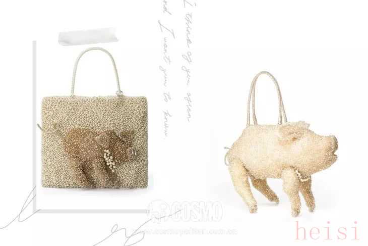 另外一只“真猪”来自ANTEPRIMA,品牌用嵌花和缇花将3D立体小猪编织在包包上,看久了居然觉得很精致。