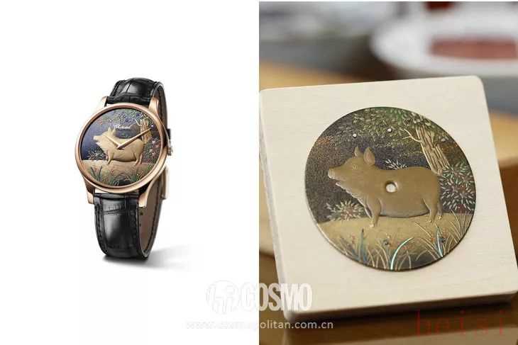 Chopard萧邦每年都会以中国生肖元素为主题设计腕表,今年也不列外。体态浑圆的小猪漫步在丛林中,富有吉祥的寓意。