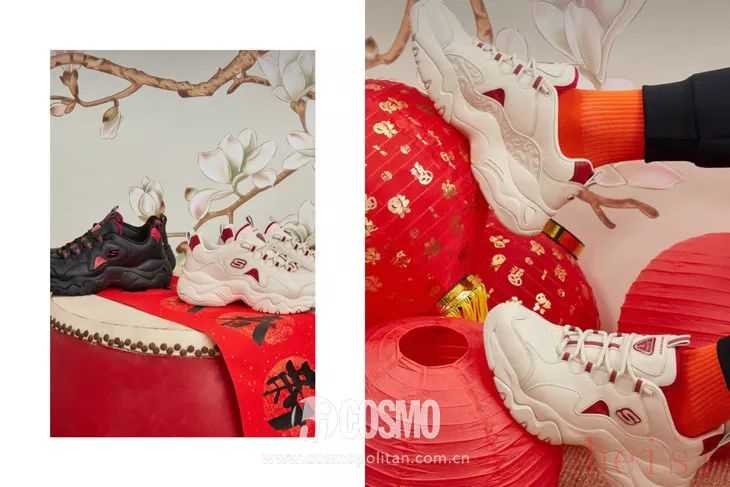 斯凯奇的设计师越来越走心了,将祥云纹理融入老爹鞋的鞋型中,侧面还有小猪鼻孔成为点睛之笔。