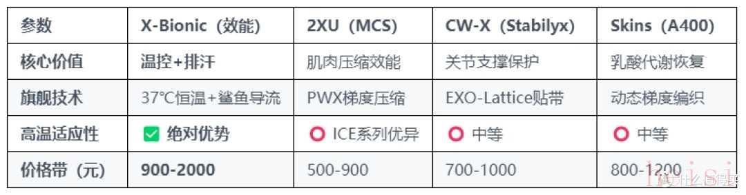 所以,他家的压缩裤较上面三家来说,价格是最高的,就因为X-Bionic以上特性,被称为是“运动环境工程师”— 它用仿生科技重建了人体与环境的互动逻辑。若你追求的是对抗环境的科技武装,而非基础压缩功能,X-Bionic仍是细分领域的唯一解--“为极致性能支付溢价”。