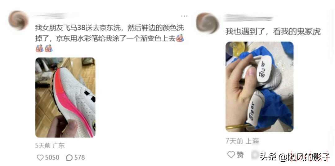 广东有个用户,去年三月把一双五千五的迪奥运动鞋送去丰巢洗,拿回来发现鞋底的五角星没了,鞋后跟多出几个大字,叫“FASHION”,他以为是洗坏了,结果不是,是洗的人顺手改的,不止他一个,有人送始祖鸟,回来变成“Art'creyx”,耐克的勾被画成锄头,新百伦的NB字母也被手绘重描,没人提前说一声,也没人赔钱,大家一开始都蒙了。