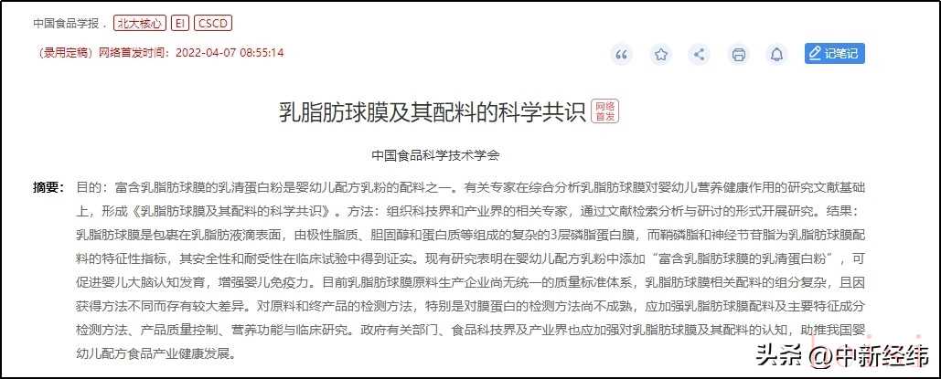 首份《乳脂肪球膜及其配料的科学共识》于《中国食品学报》刊发