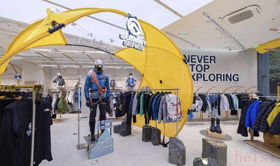 在设计上,店铺划分为多个区域,为消费者呈现兼具户外高性能与实用设计美学的全场域装备选择,包括户外运动及休闲系列、象征品牌尖端户外科技的Summit Series巅峰系列及北面UE(Urban Exploration)城市探索系列在内的多条线产品矩阵;并通过精心规划的探索动线设计,构建起专业与都市生活之间的场景联结。