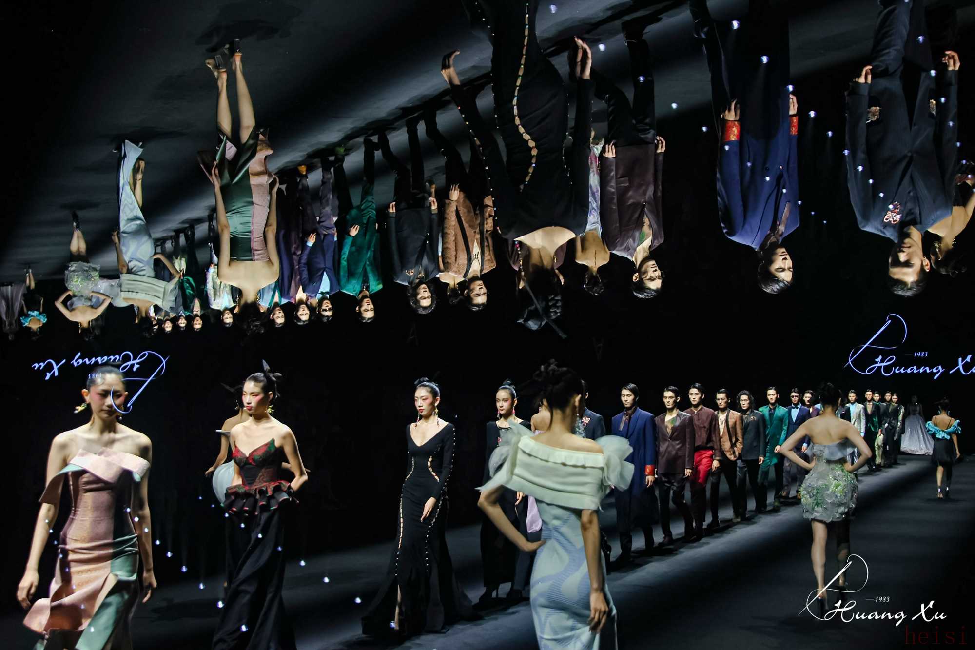 作为始终深耕“时尚+⽂化+艺术”融合领域的品牌,HUANG XU 1983⾃创⽴以来便坚守“在传统中寻创新,在创新中求突破”的理念。品牌创始⼈黄勖始终坚信,中华传统美学是时尚创作的⽆尽源泉——从诗词歌赋的意境之美到⺠间⼯艺的匠⼼巧思,皆是设计灵感的养分。多年来,品牌以严谨的审美执⾏⼒打破艺术边界,黄勖将针线化作“笔墨”与“⾳符”,在⾯料上“吟诗作曲”,让古今华裳跨越时空对话,既保留传统服饰的⽂化基因,⼜赋予其符合当代审美的现代表达,此次《亘·韵》发布会,正是这⼀理念的⼜⼀次深度实践。