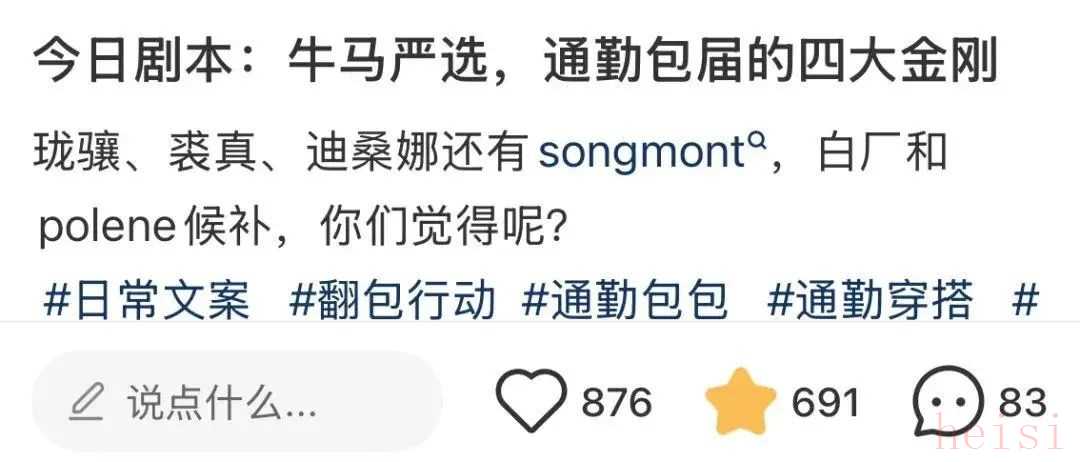实用主义成为这届消费者的核心诉求。他们想要一个包兼顾通勤、差旅、逛街等多场景需求。社交媒体上,网友甚至将山下有松、裘真、迪桑娜与珑骧并称为“通勤包界的四大金刚”。