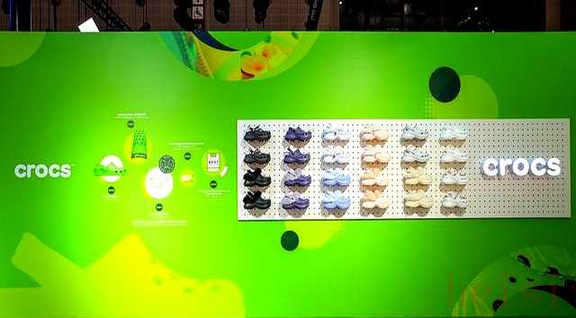 2. "主题合作:" 展会期间,Crocs卡骆驰着重展示了其与合作伙伴共同打造的“潮流新生态”。