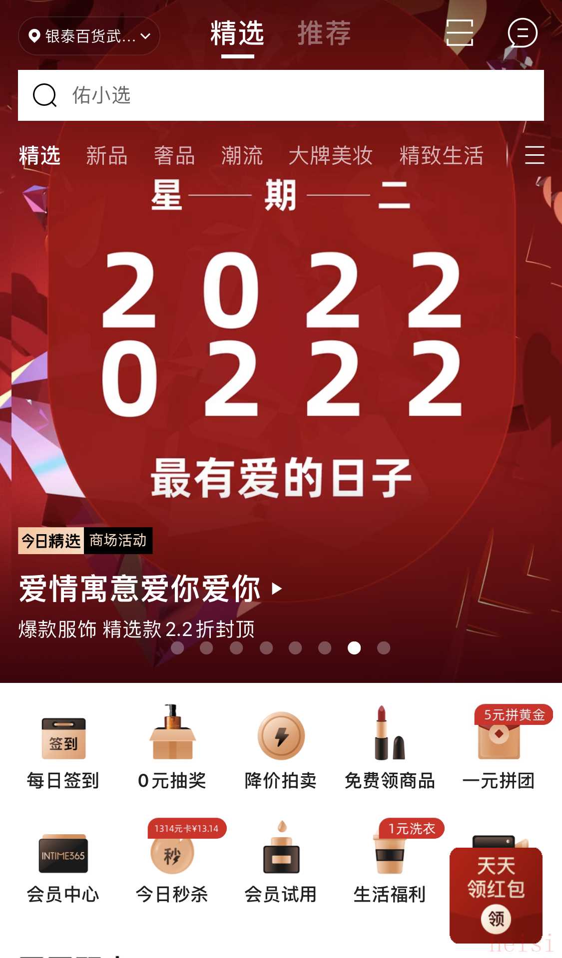 “我们准备了很多跟‘2’相关的优惠和惊喜礼物。”银泰百货相关负责人介绍,即日起至2月22日,银泰百货杭州11家门店的部分品牌服饰、配饰、餐饮、辅营等推出2.2折、第二件半价的活动,美妆消费满1500元还能返200元券。而在杭州任一银泰百货门店单笔消费实付满222元,即有机会抽取价值1699元的曼卡龙钻石项链,抽完为止。