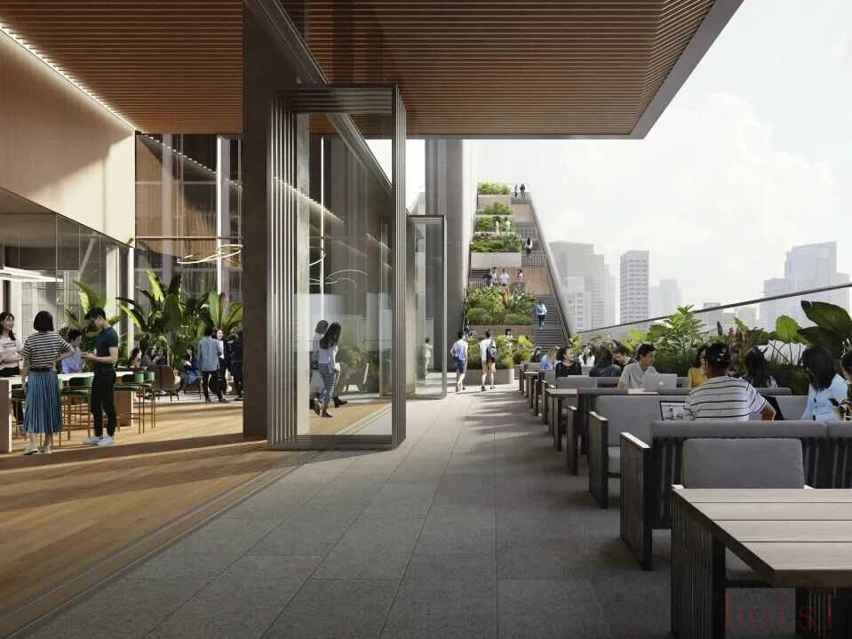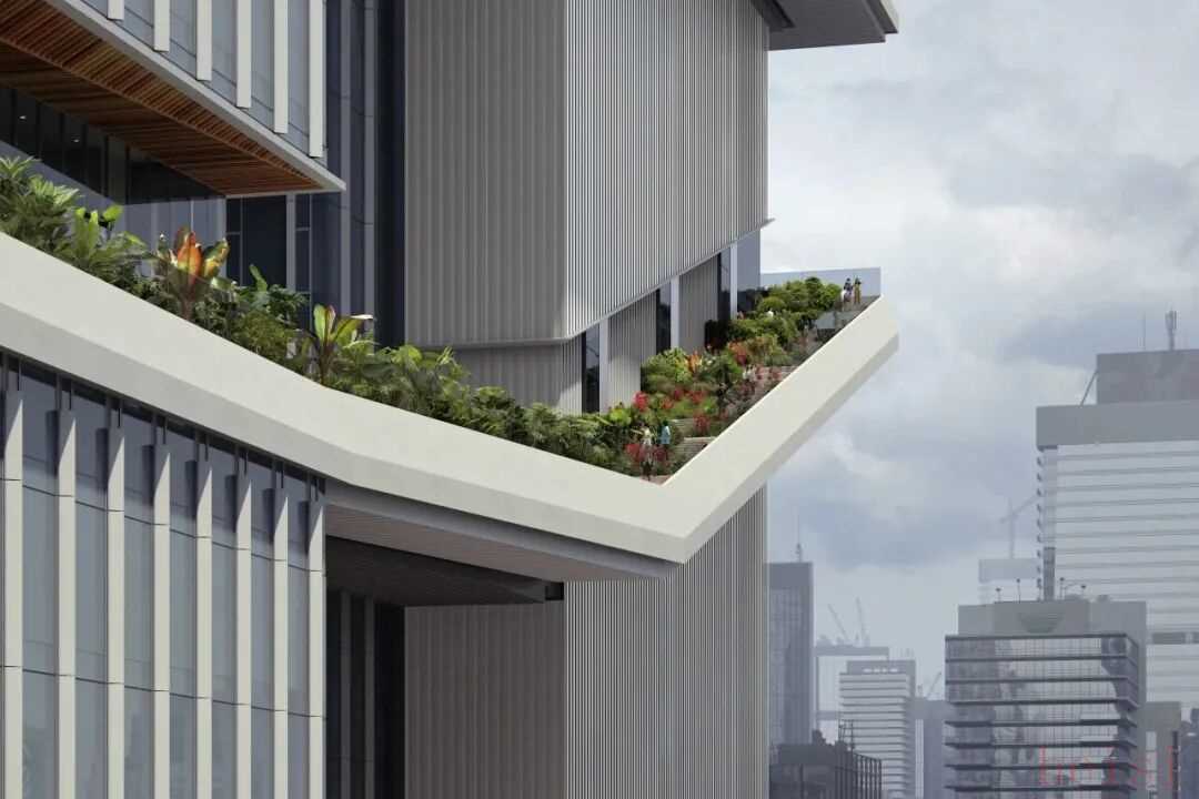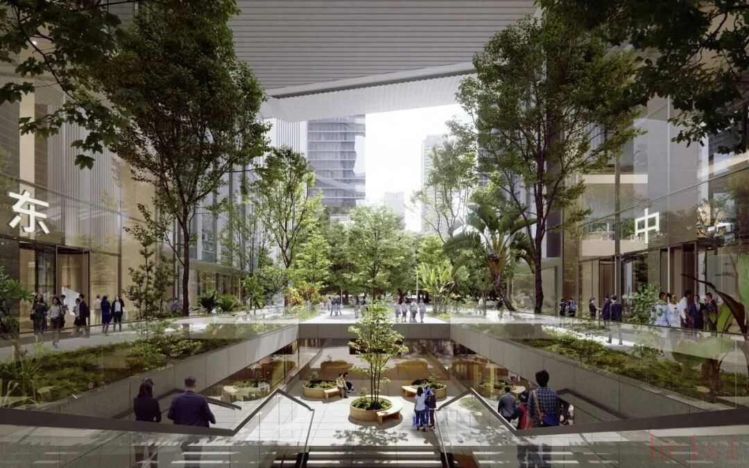 国际知名的KPF建筑事务所主持设计,致力于为员工营造平等、开放且便于交流的办公氛围,从而激发团队创新力与执行力。考虑到深圳温暖的气候和人们对自然环境的向往,设计中融入了多处户外露台,既适合协作也能独处休憩。这些露台由一条起于大堂、延伸至天台的“景观缎带”串联,形成一条可漫步、可放松、甚至带点攀登趣味的立体路径。