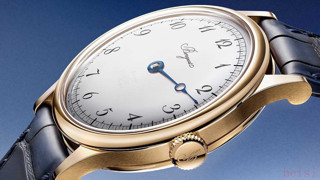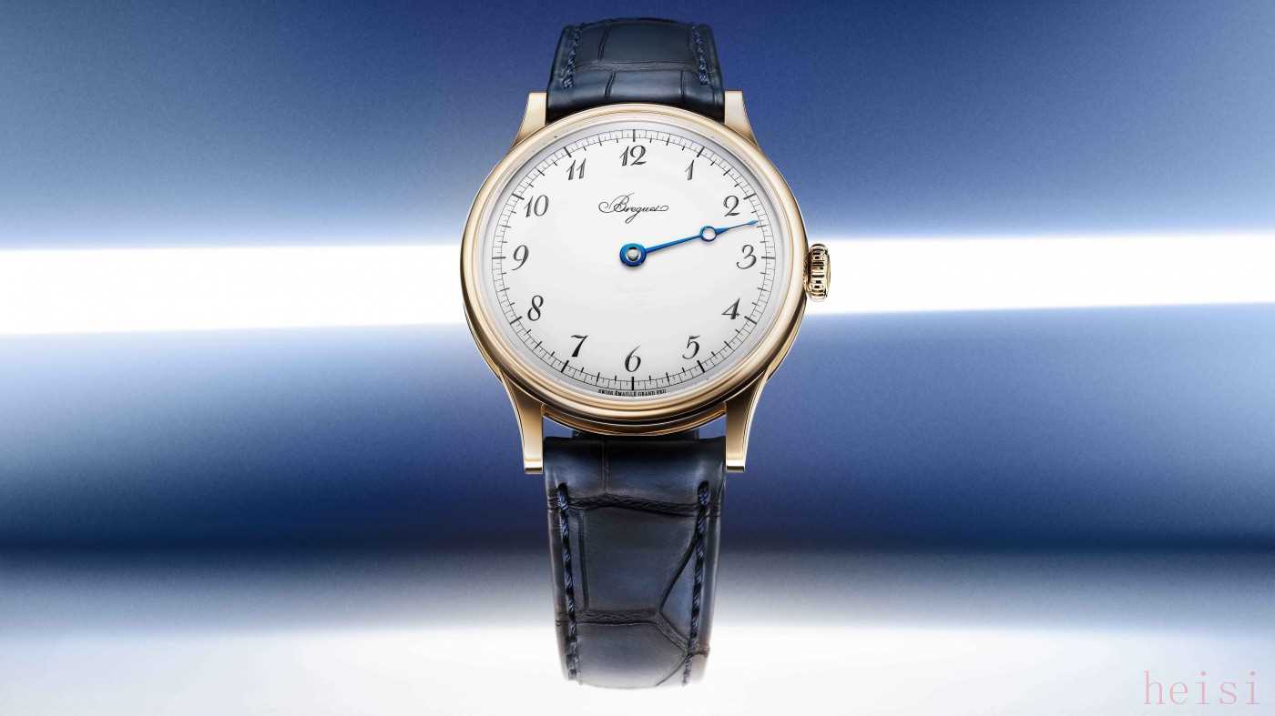 2025年也是宝玑品牌诞生的第250周年,通过致敬阿伯拉罕-路易·宝玑先生两个世纪之前所创造的单一指针怀表而庆祝并纪念宝玑在制表行业的领军地位。40毫米表径的18K宝玑金表壳,厚度仅为10.8毫米,表壳以缎面打磨工艺处理,表底盖以手工玑镂刻花“钟表堤岸”图案润饰。表盘采用纯净无暇的珐琅表盘,通过最具辨识度的烧蓝工艺打造的宝玑指针,锥形针尖微微倾斜指示经典宝玑阿拉伯数字时标,环形轨道式分钟刻度圈特别标注了正点小时及5、10、15和30分钟刻度。