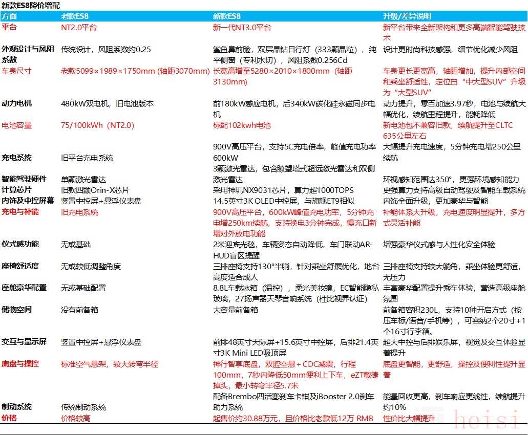 ③ 相比老款 ES8 性能上也大幅升级,从 NT2.0 平台切换 NT3.0 平台