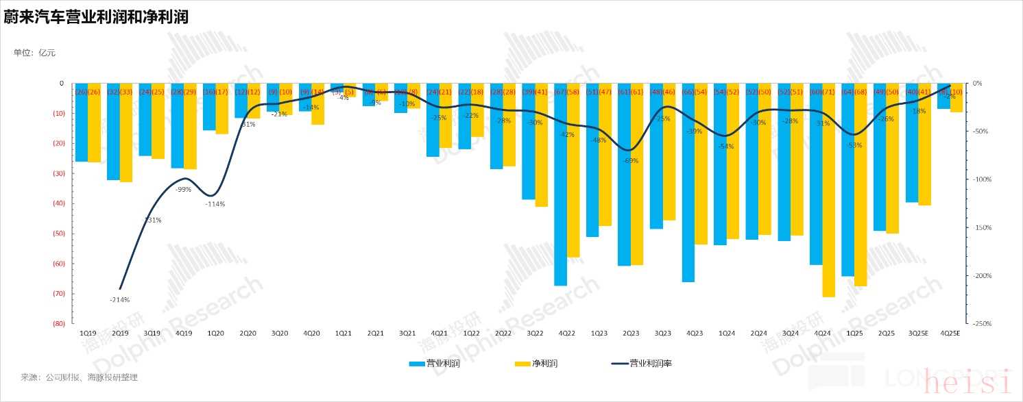 如果按照 ES8 在四季度月均销量贡献 1 万辆,四季度整体销量 12.4 万辆来预计(月均 4.1 万辆),假设整车毛利率水平能在高价的 ES8 交付后回升到 15.4%,海豚君预计蔚来四季度的营业利润/净利润约-8 亿/-10 亿,虽然仍难以实现盈亏平衡,但减亏趋势非常确定,也要高于市场目前对于蔚来四季度-19 亿的净亏损预期。
