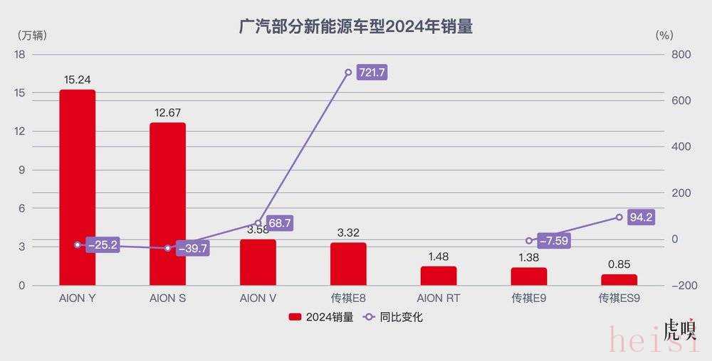 传祺5.6万销量中有4.7万来自M8、M9两款普通消费者比较少购买的中大型MPV产品。而埃安近33万辆的总数中,长期与“网约车”密切关联的AION Y和AION S,就占到了27.9万辆。最终和普通消费者强关联的,只剩下了AION V、AION RT和传祺ES9,后三者在2024年12月、2025年1月(因为RT上市不满一年,所以不采用年销量数字)只卖出了1.28万辆和4877辆。
