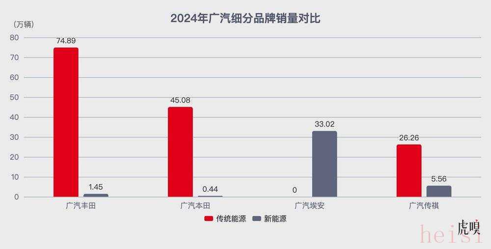 以2024年为例,广汽的四大业务品牌丰田、本田、传祺、埃安虽然销量同步均有所下滑,但四个品牌的整体销量仍能排进中国市场细分品牌销量的前25名(分别位列8、16、24、23)。