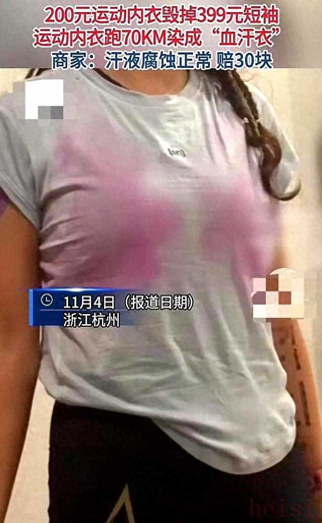 浙江杭州一位女性跑者在11月初完成了一场70公里的艰苦越野赛后,遭遇了意想不到的尴尬。她所穿着的飞比特(FlipBelt)运动内衣,在赛后被发现严重褪色,不仅将价值399元的运动短袖胸部区域染成醒目的粉红色,连其胸部皮肤也未能幸免。
