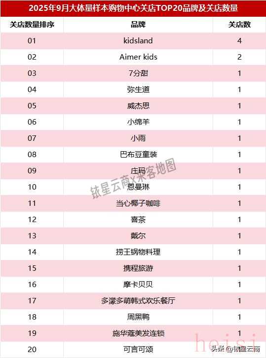 无论是开店还是关店,本质都是品牌与商场在成本、收益、市场趋势间的动态博弈,而消费者需求变迁与商业环境迭代则是驱动这一博弈的核心变量。本篇为铱星云商×来客地图《全国商场2025年9月客流报告·品牌开关店》,每月一期,为商业地产人士提供一个高效快捷获取样本商场品牌开关店动态的端口。9月全国商场TOP30开店品牌及新店数