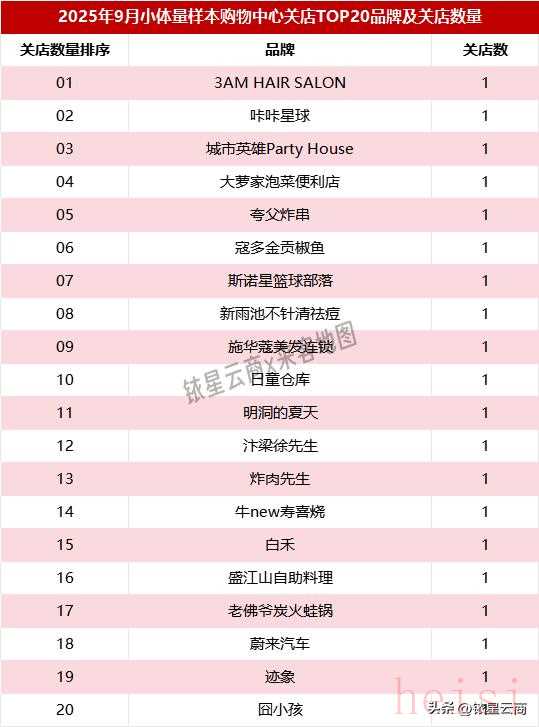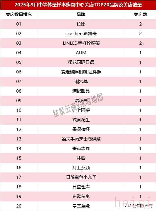 和府捞面天津天河城店,图源:项目官方小红书9月全国商场TOP20关店品牌和闭店数