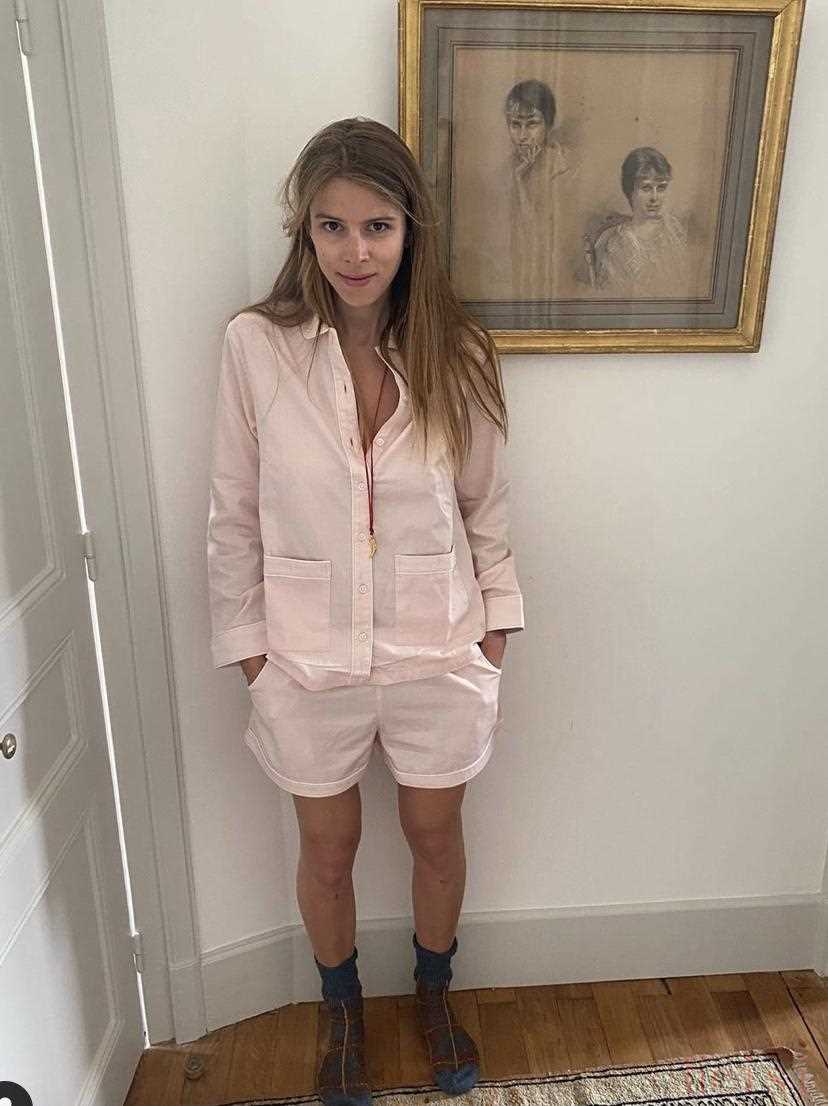作曲家兼歌手Lou Doillon换上条纹丝绸睡衣,搭配多条坠链,呈现出知性又不失性感的独特气质。就算待在家,也可以跟出门一样美!