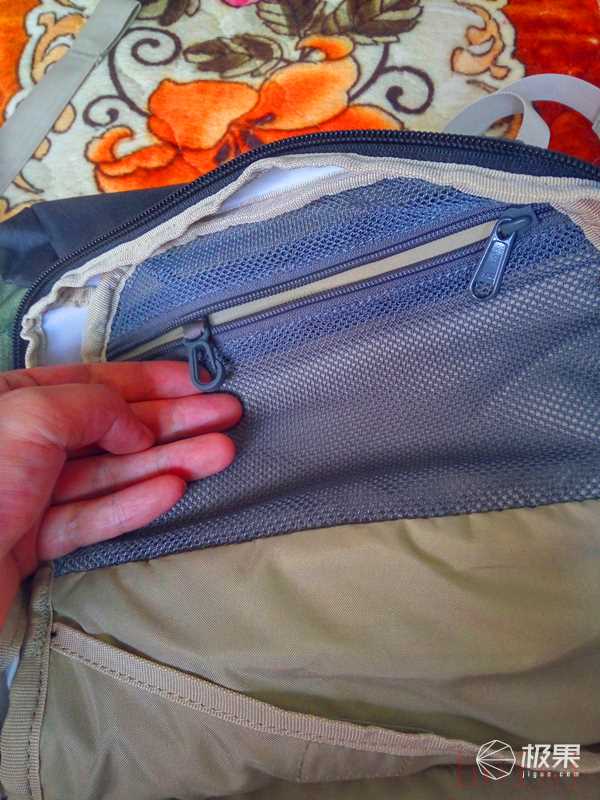主背包的拉索为双向对开设计,长度占据整个背包的上半截,需要装大体积物品的时候可以狮子大开口。