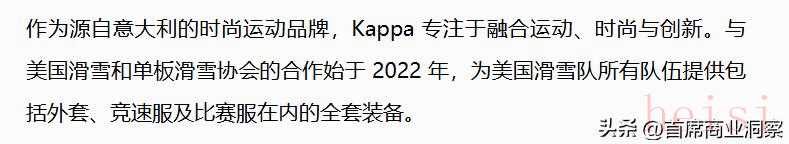 滑雪赞助本是“王炸”,却成“无效资源”作为深耕“运动+时尚”的百年品牌,Kappa自带“体育基因”。2022年开启和美国滑雪与单板滑雪协会长达十年的合作,是能扭转颓势的好资源。