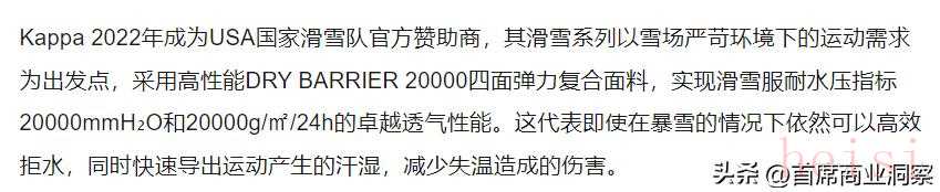 以及品牌调性与专业赛事错位,滑雪偏向专业高端和功能性,而Kappa在国内消费者心中早已不是专业运动品牌,即使有消费者花心思海淘,也会作对比。