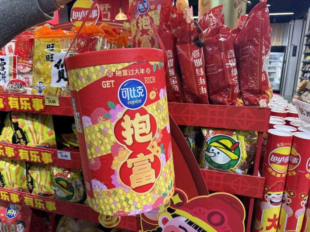 最近逛超市的市民大概会注意到,超市入口处摆放了许多红红火火、包装巨型的零食,刚拿到手,好家伙,沉甸甸的分量仿佛在大声宣告:“零食盛宴,即将开启!”