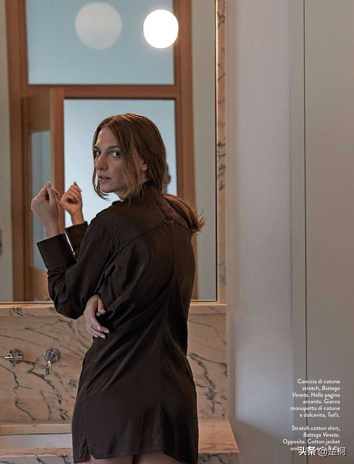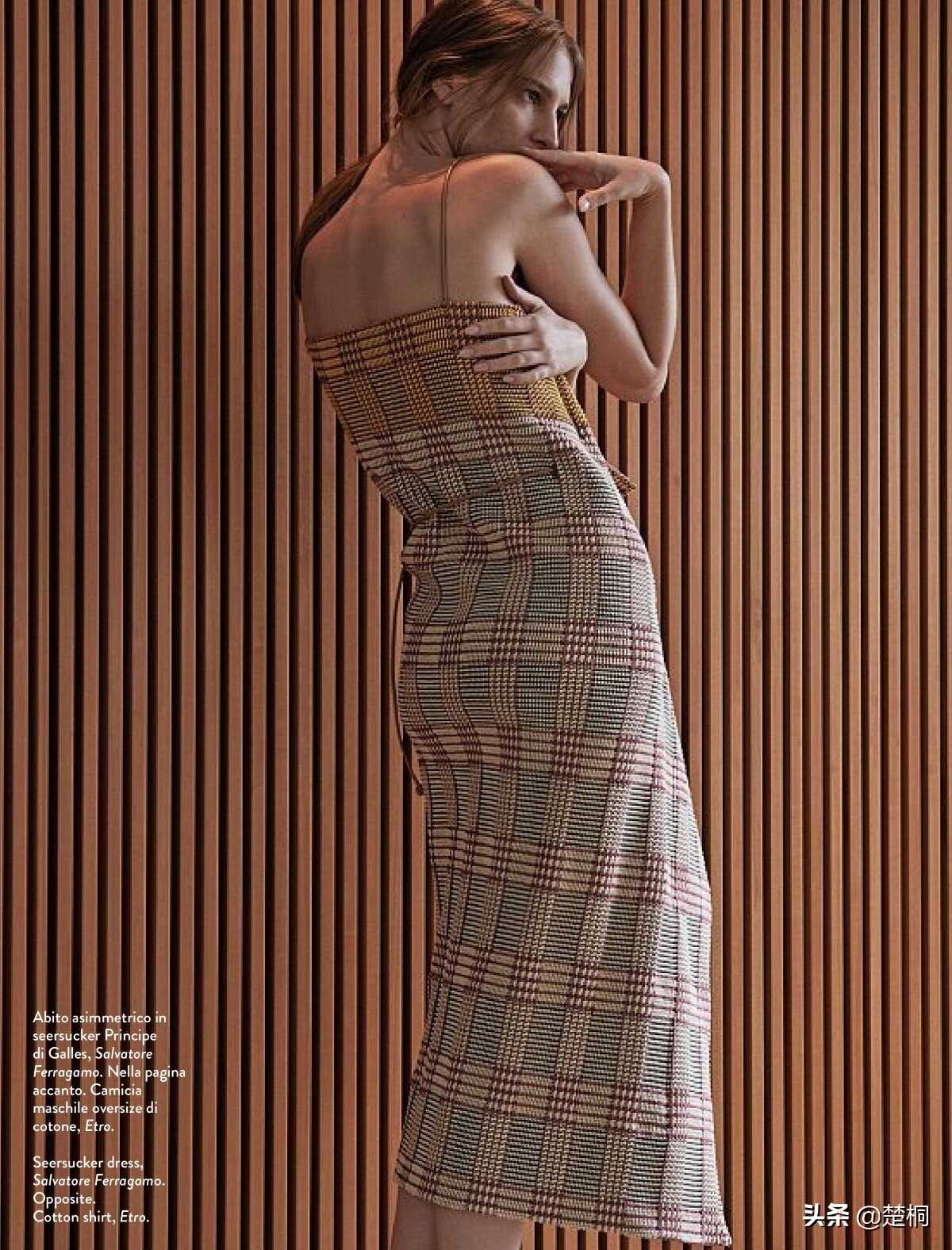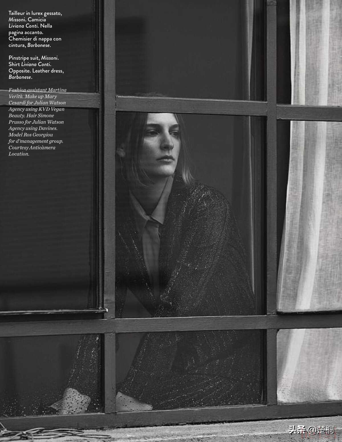 希腊超模罗斯·乔治欧(Ros Georgiou)近日为意大利女性时尚杂志《Amica》拍摄了新的时尚服饰摄影。设计师古力拉别出心裁地设计了一套以“私家侦探”为主题的时尚男装,和罗斯形成了一股男女反差,十分新颖。