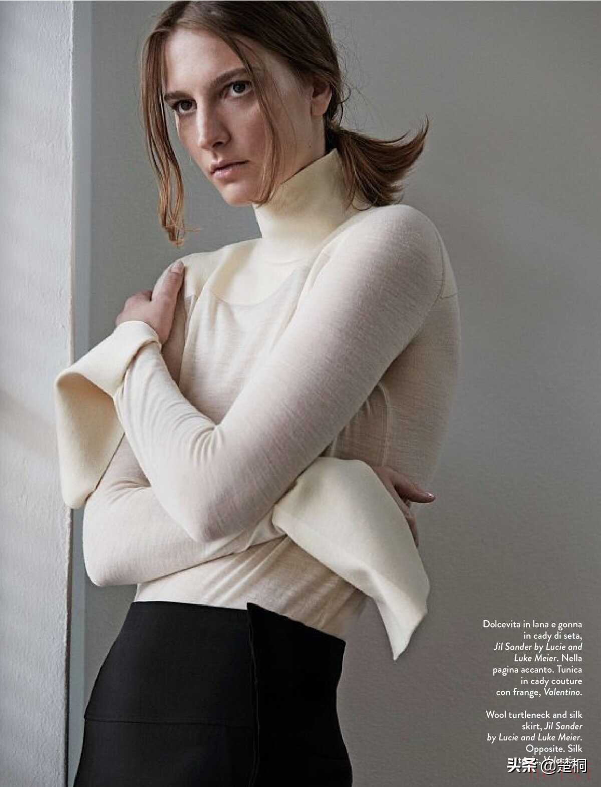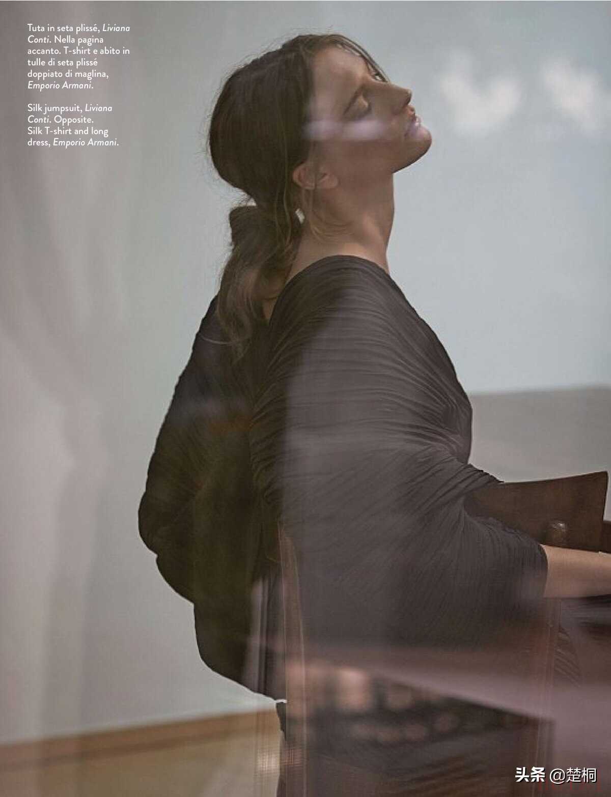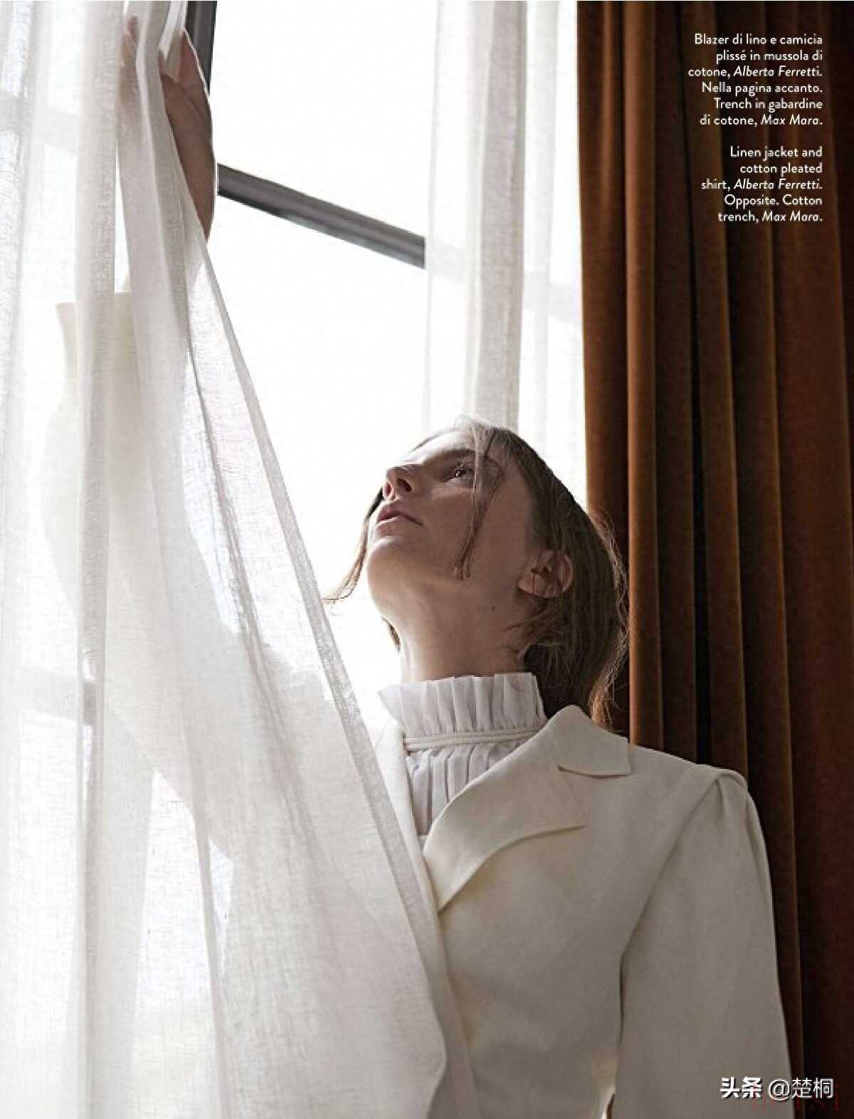 希腊超模罗斯·乔治欧(Ros Georgiou)近日为意大利女性时尚杂志《Amica》拍摄了新的时尚服饰摄影。设计师古力拉别出心裁地设计了一套以“私家侦探”为主题的时尚男装,和罗斯形成了一股男女反差,十分新颖。