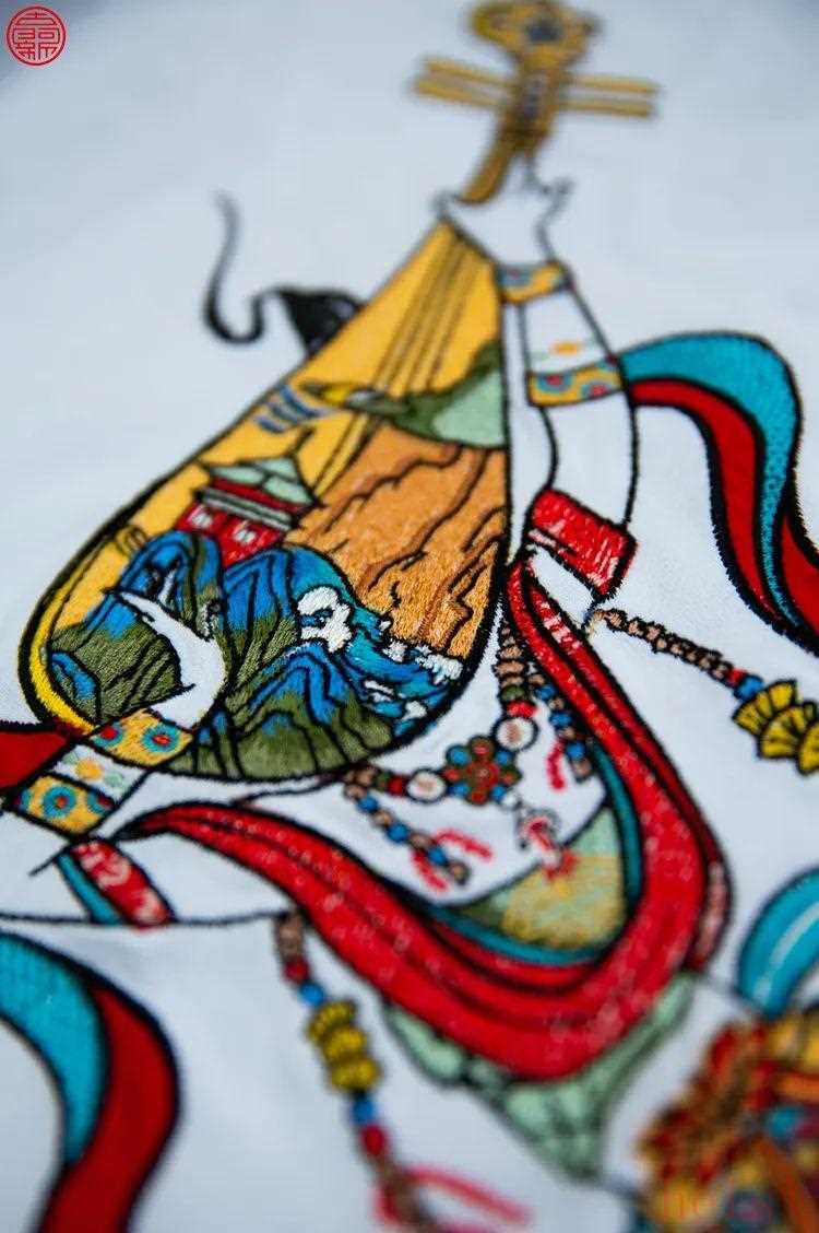 这款“飞天仙女刺绣”采用了贴布绣融合重工刺绣的制作工艺,使得飞仙整体形象鲜艳动人,极具灵动感的同时,保持了刺绣整体的柔软性。