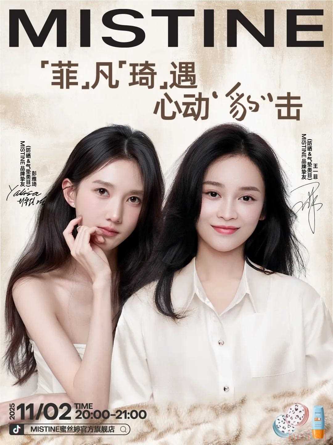 ▶MISTINE官宣品牌挚友(防晒、气垫类目)王一菲&彭雅琦