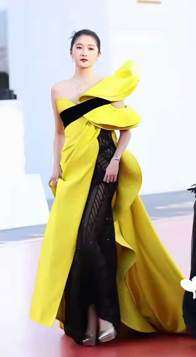 2. "关晓彤 (Guan Xiaotong)":被形容为“黑丝透视”。这指的是她穿着黑色丝袜,并且丝袜的材质比较轻薄,可能隐约能看到腿部皮肤或线条。这种装扮通常旨在展现腿部美,但在某些评论者看来,可能过于暴露或不够得体,尤其是在相对正式的颁奖典礼场合。