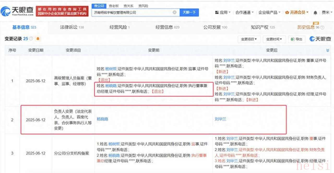 近日,杨铭宇黄焖鸡创始人杨晓路卸任多项重要职务,包括不再担任济南杨铭宇餐饮管理有限公司的法定代表人、执行董事兼总经理,刘华兰接任法定代表人,并担任董事、经理、财务负责人职位,引发市场关注。