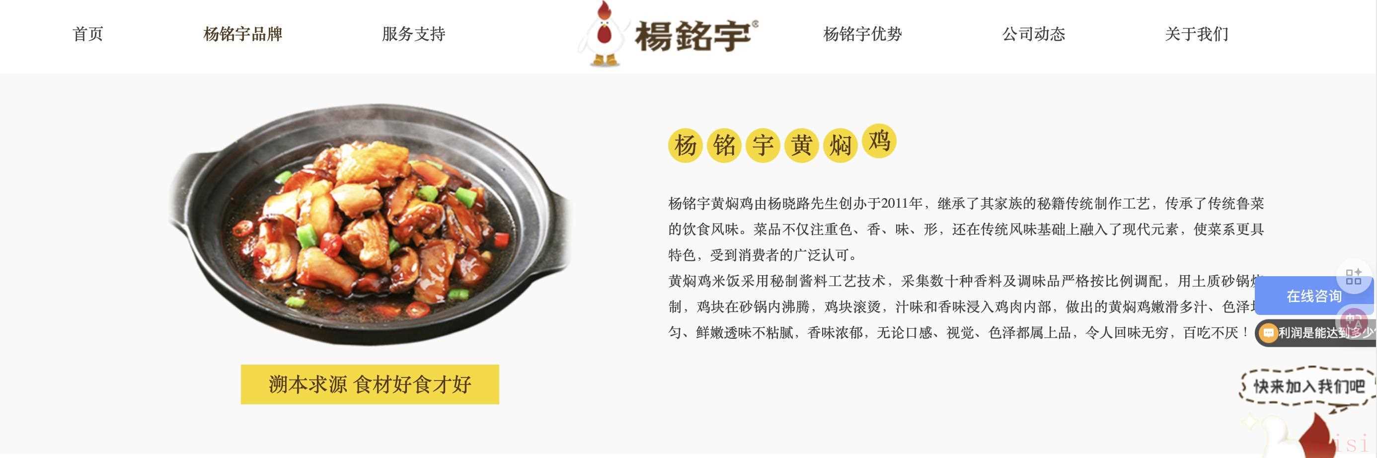 济南杨铭宇餐饮管理有限公司官网显示,杨铭宇黄焖鸡由杨晓路先生创办于2011年,继承了其家族的秘籍传统制作工艺,传承了传统鲁菜的饮食风味。