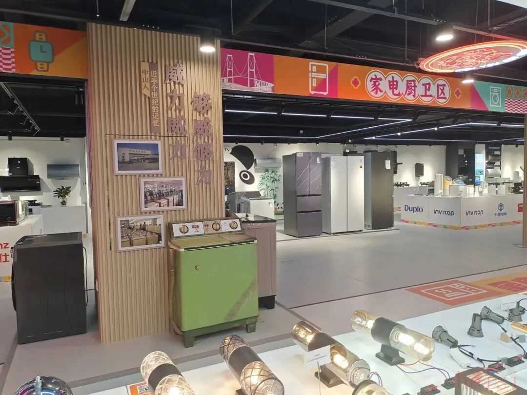 展销中心融合中山制造业实力、人文历史、时尚潮流、旅游购物于一体,既满足了家庭一站式“中山优品”消费升级需求,更是“游中山、购好物”的特色旅游目的地,设有中山历史街区、完美美妆、威力威力够威够力、时光音乐、中山品牌墙等多个主题打卡点,进一步丰富游客体验。