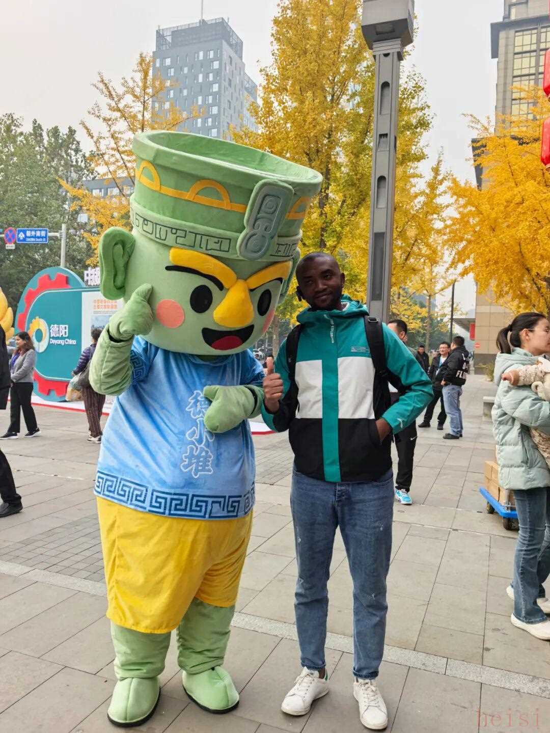 这两天,集市火爆,北京市民争相购买“德阳好物”,而“德阳好物”形象代言人“德小堆”一亮相便自带“流量光环”。这个融合三星堆青铜元素与现代设计的形象代言人,身着青铜绿主题服饰,圆滚滚的身形搭配古蜀文明特有的纹样,瞬间抓住现场观众的目光。不少路过的国际友人被“德小堆”的独特造型吸引,主动上前挥手互动、合影留念。