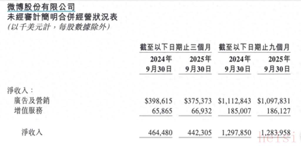 这表明微博本季度的总收入(包括广告、增值服务、电商佣金等)相比去年同期减少了5%。