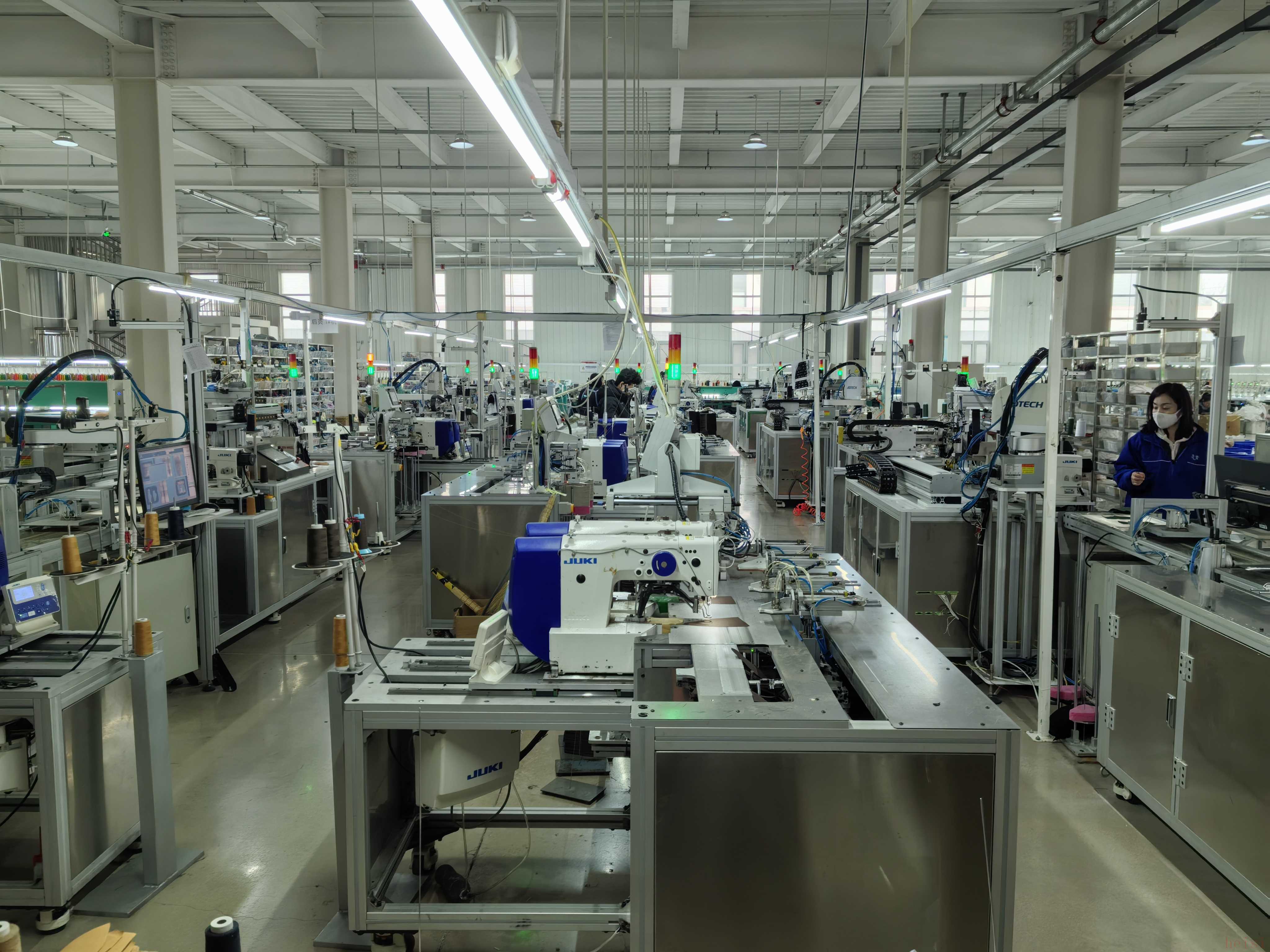 在青岛前丰国际帽艺股份有限公司的生产车间,一排排机械臂上下挥舞,视觉系统精准定位、机械手迅速抓取面料、缝合设备准确完成每一道缝合工序。仅仅8秒钟,一组复杂的工序便全部完成。