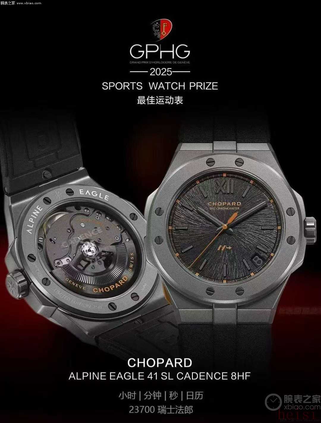 2025年日内瓦钟表大赏(GPHG)获奖名单出炉,Chopard萧邦Alpine Eagle雪山傲翼系列41 SL Cadence 8HF腕表力压群雄,将“最佳运动腕表”收入囊中。