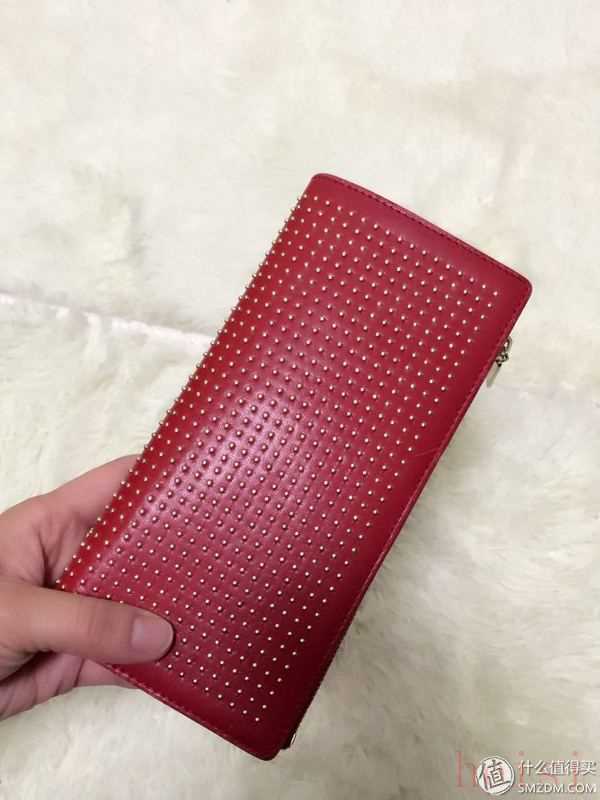 嘿嘿顺便撸了个钱包,是传说中的破财红,铆钉装饰,小牛皮的质感,到现在依然是撸主出镜率最高的一款钱包!记得当时入手价格是598*0.59=352大元