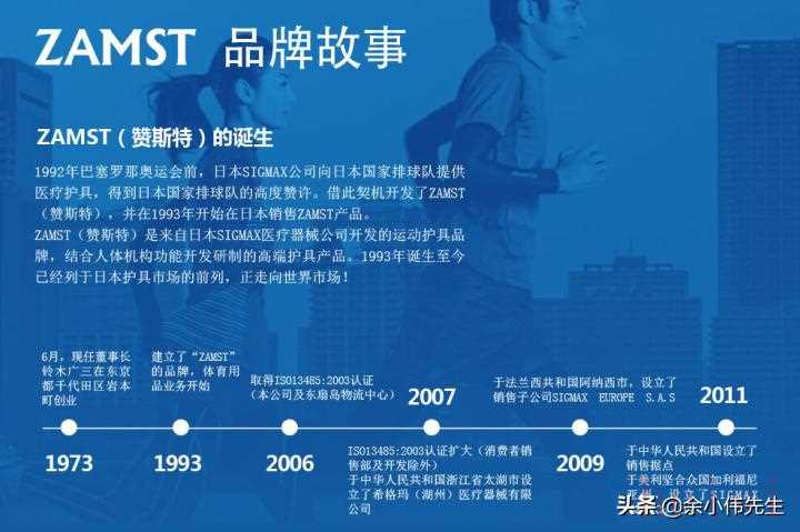 8、Zamst(赞斯特):日本希格玛株式会社旗下,创立于1993年,源自日本医疗器械公司的专业护具品牌,以生产石膏、护具等的“外固定”产品为主的企业,在伤者的伤处固定和康复等的医疗领域有着丰富经验。