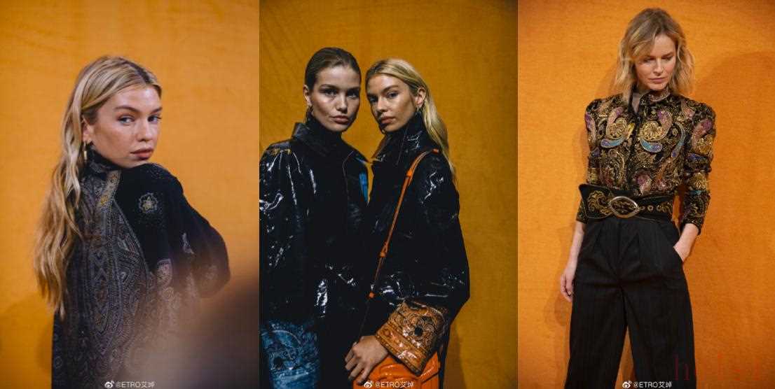 新京报讯(记者 刘佳奇)意大利奢侈品品牌ETRO近日在米兰举办了2020/21秋冬女装系列发布秀。秀场是米兰一所音乐学院的回廊,场地被黑色笼罩,T台尽头的几幅金框油画格外显眼,烘托复古氛围。