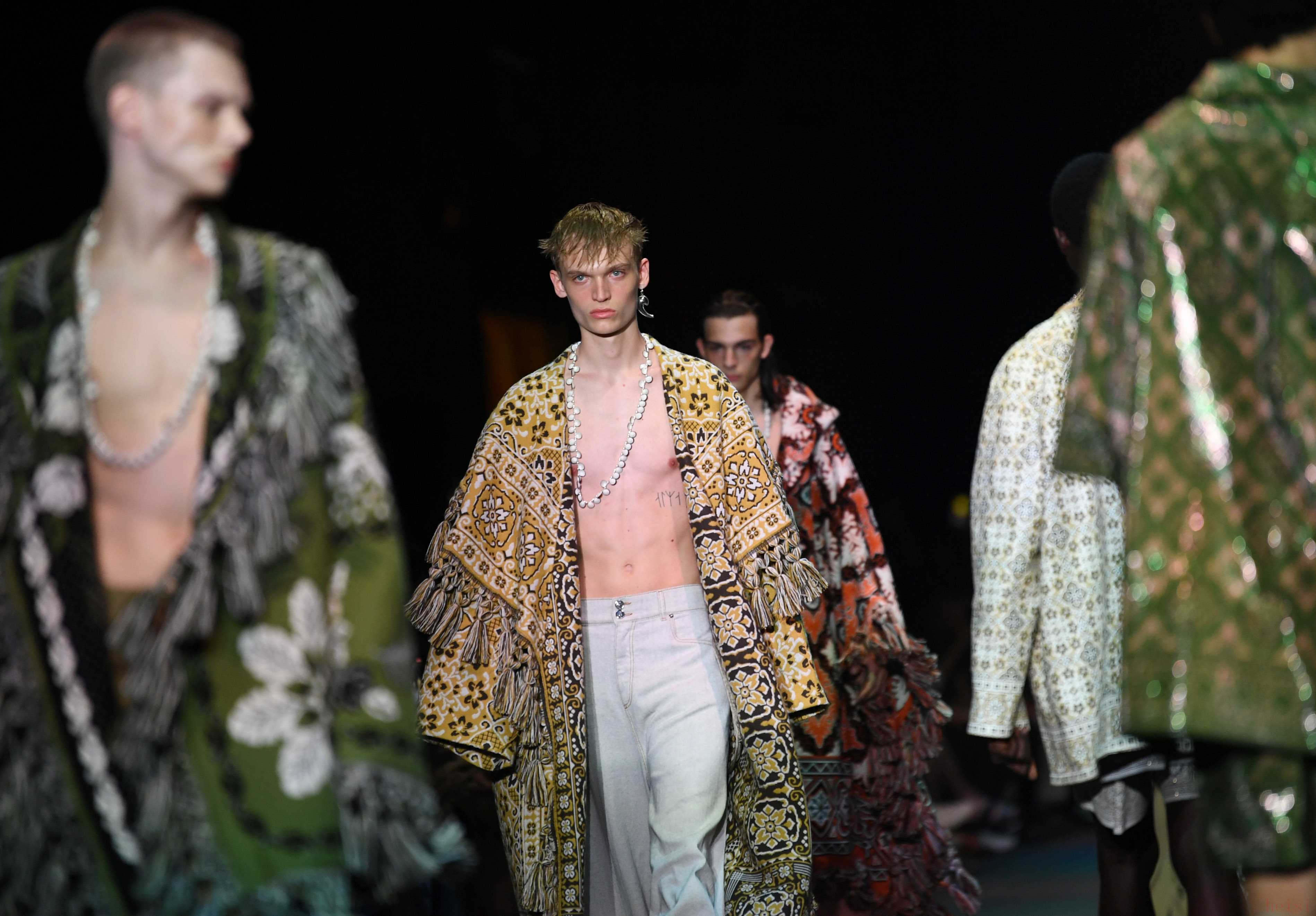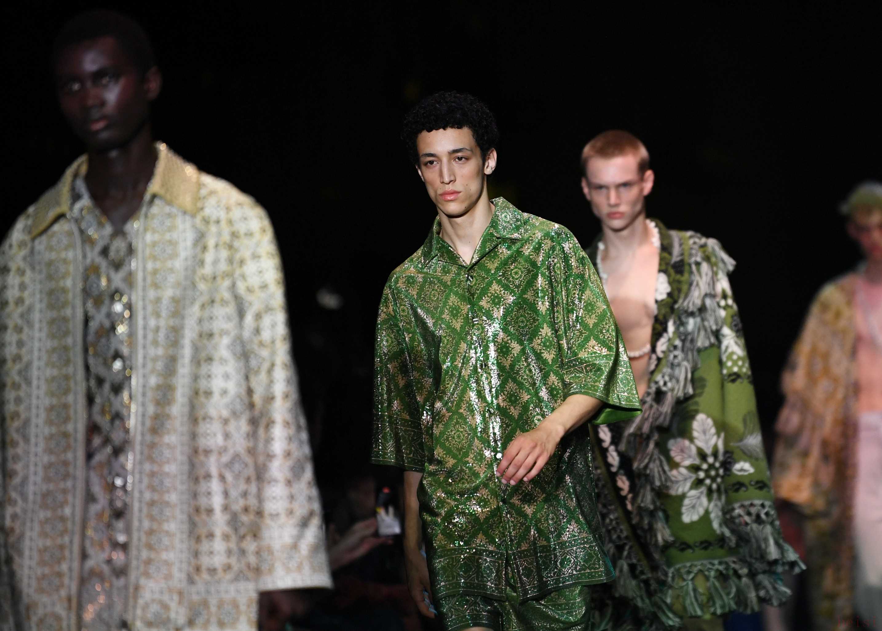 6月18日,模特在意大利米兰男装周上展示Etro品牌新品。 新华社记者 金马梦妮 摄