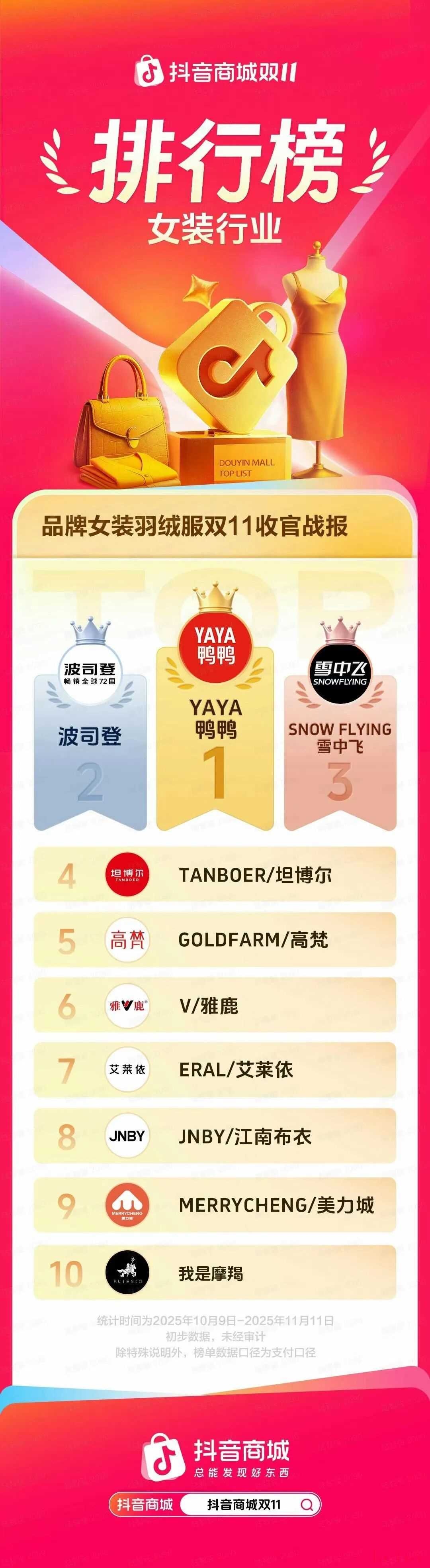 抖音电商品牌羽绒服女装双11战报