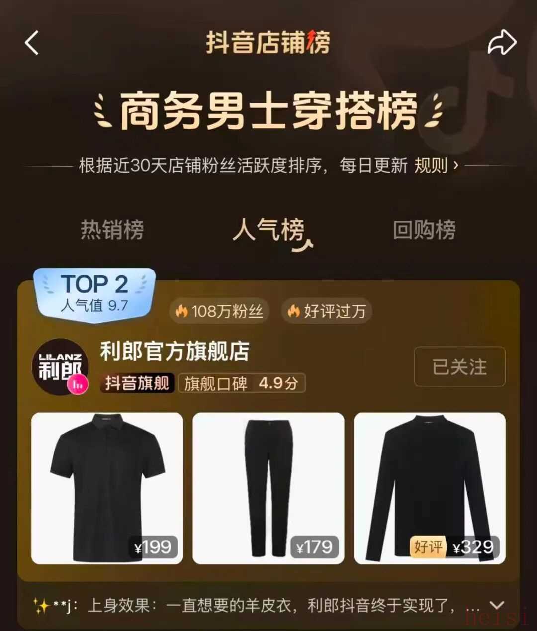 在外界印象中,利郎原有用户以注重品质的成熟中产为主。而通过在抖音的品牌焕新,利郎的线上客群明显更年轻。