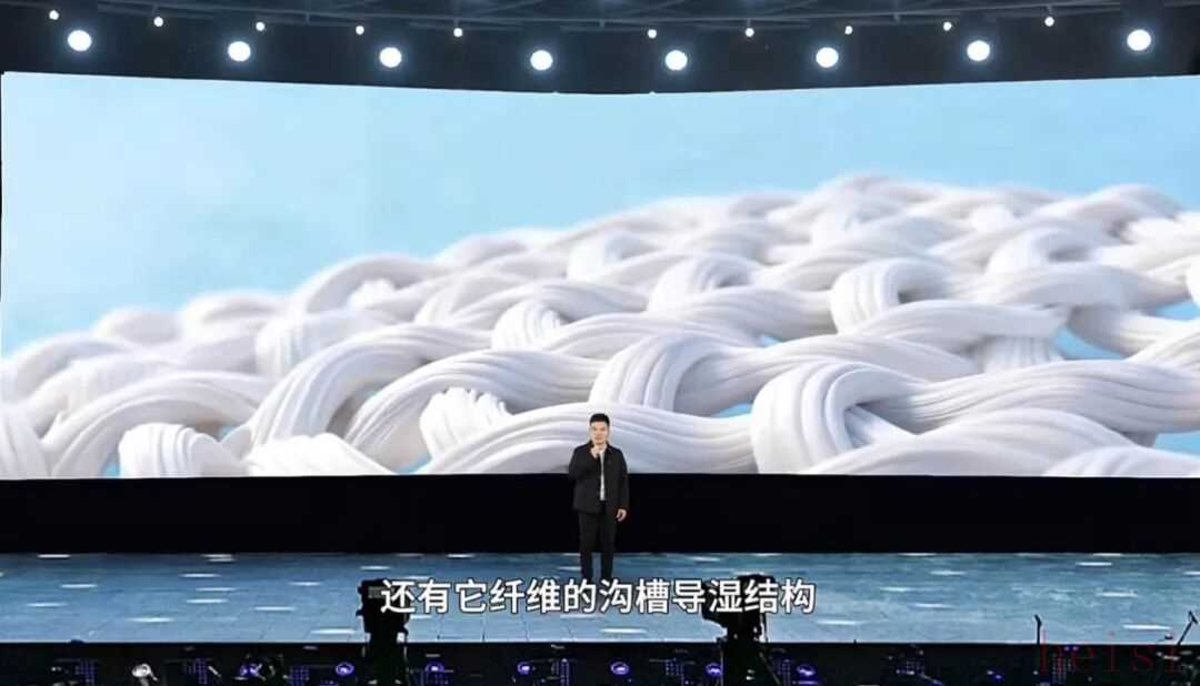 整场直播间发布会的风格,没有堆砌“高端”“经典”等标签,反而以苹果、小米式科技发布会为参照,从自研面料的透气指数、抗皱参数,到外套肩线15度自然倾斜的精密设计,每个细节都像在拆解一款“男装科技产品”。
